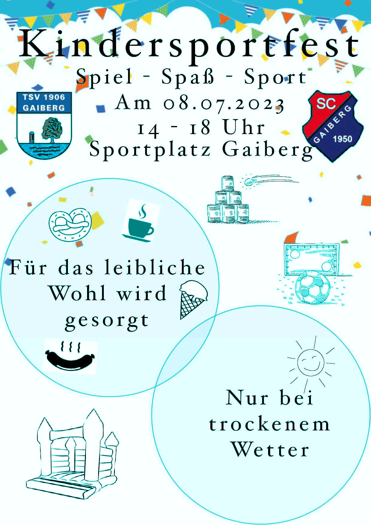 Am 08. Juli 2023 führen die beiden Vereine SC Gaiberg und TSV Gaiberg gemeinsam ein Kindersportfest durch.
