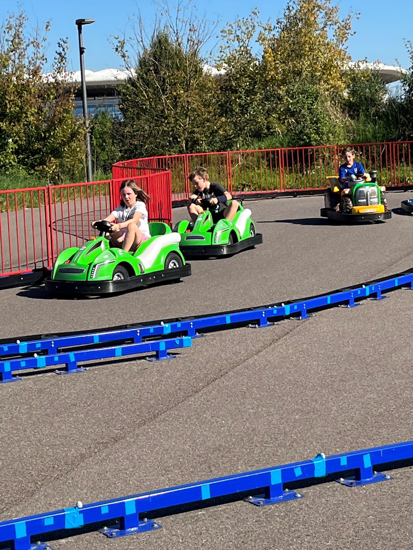 Weiter ging es zur Hauptattraktion - cart fahren - man musste sich Chips verdienen, sonst konnte man nicht fahren. Unsere sportlichen Kinder bewältigten das hervorragend.