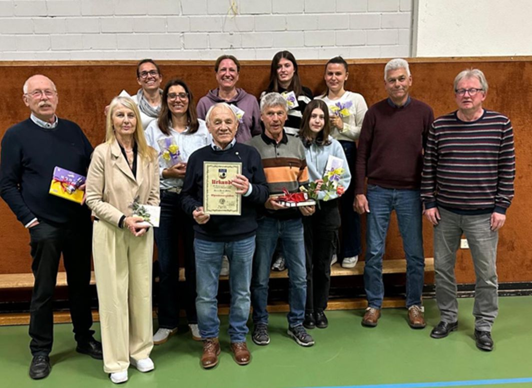 Frau Thurau vom Turngau Heidelberg sprach in ihrer Rede davon, dass es Menschen gibt, die einen Verein mitgestalten und prägen. Herr Müller war seit 1955 Mitglied beim TSV, davon 25 Jahre in der Vorstandschaft. Er bekam die goldene Vereinsplakette und eine Urkunde überreicht. Sie bedankte sich recht herzlich bei Herrn Müller, er habe den TSV mit Leben gefüllt und das Vereinsleben mitgeprägt.